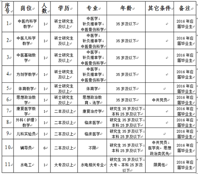 保山中医药高等专科学校 2016年直接到高等院校公开招聘人员公告 根据中共保山市委组织部、保山市人事局...