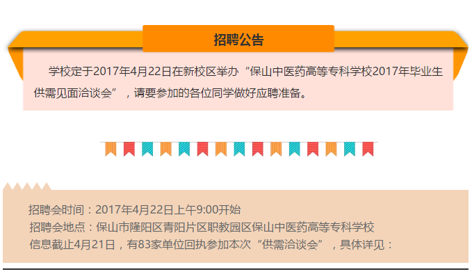 保山中医专2017年毕业生供需见面洽谈会公告