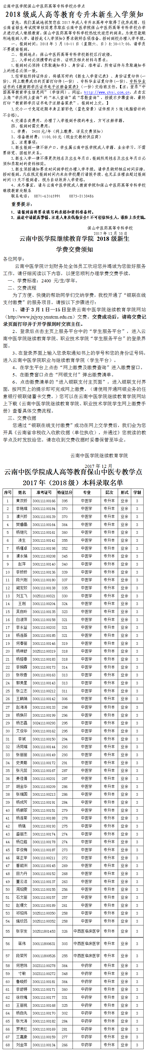 2017级转专业学生名单公示 根据《保山中医药高等专科学校优秀学生转专业管理办法》(保中医专〔2017〕68...