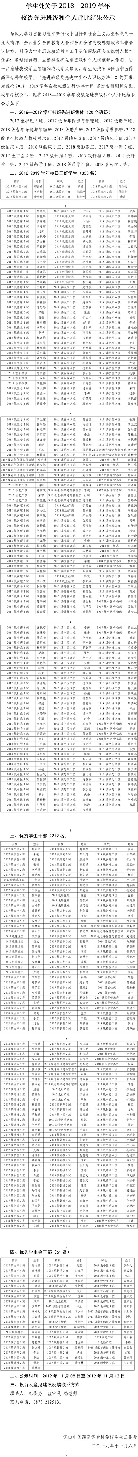 学生处关于2018—2019学年校级先进班级和个人评比结果公示
