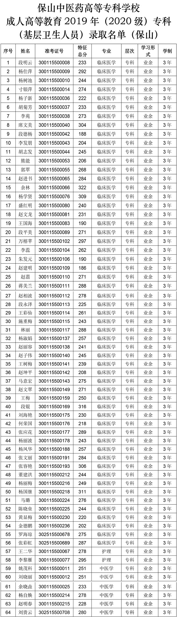 保山中医专2020级成人高等教育专科(基层卫生人员)新生入学...