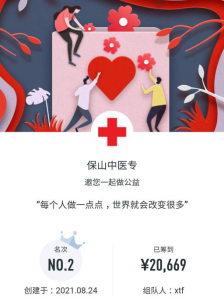 保山中医专积极参与“99公益日•博爱保山行”活动,截止9月14日,共有4967人次参与,筹款20669元。
