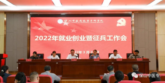 3月22日下午,保山中医专2022年就业创业暨征兵工作会在图书楼报告厅召开。