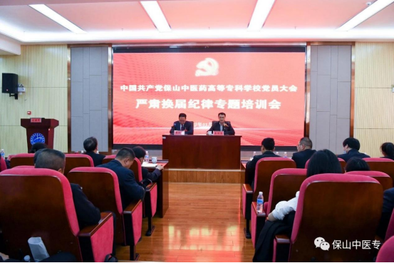 11月25日,中国共产党保山中医药高等专科学校党员大会严肃换届纪律专题培训会在图书馆报告厅召开。