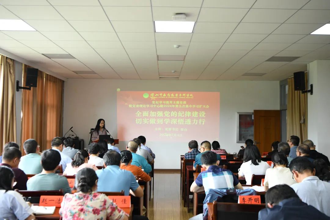 7月4日,学校党委举行党纪学习教育主题党课暨理论学习中心组2024年第五次集中学习,党委书记张山主持...