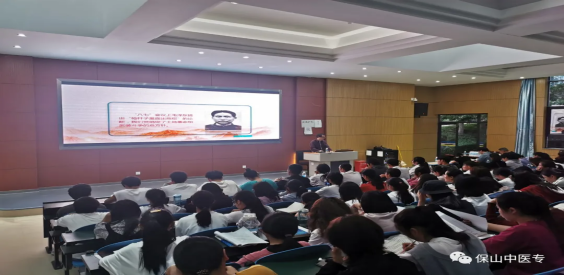 蒋天明以中国共产党百年历史、中国共产党云南历史、中国共产党保山历史为主线,紧紧围绕“革命—建设—改革—复兴”四个关键词,带领师生回顾了中国共产党百年历史,细数了民主革命时期的重大转折点;梳理了云南党史上的伟大历史事件——西南联大教育救国故事、红军长征抢渡金沙江等英勇故事;最后回顾了云南保山党史和保山中医专发展史。