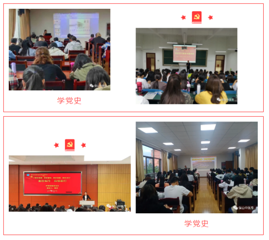 为深入学习贯彻习近平新时代中国特色社会主义思想,高质量高标准开展好党史学习教育专题党课和宣讲工作。连日来,保山中医专充分发挥校党委、二级党组织及大学生宣讲团三个层面带动示范作用,统筹安排,精心组织,迅速掀起专题党课及宣讲热潮。