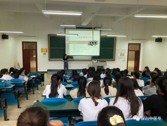为认真抓好党的教育方针进校园、进班级、进头脑“三进”行动,保山中医专组建了党委宣讲团、大学生宣讲团,马克思主义学院充分发挥思政课主渠道作用,组织全体思政课教师分批深入全校各班级进行党的教育方针专题教学。