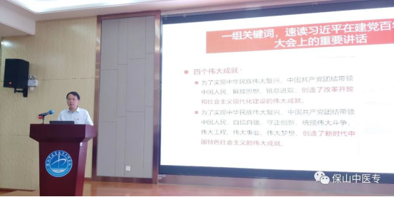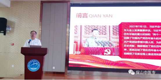 为深入学习贯彻习近平总书记“七一”重要讲话精神,贯彻落实中共中央办公厅、国务院办公厅印发《关于深化新时代学校思想政治理论课改革创新的若干意见》和《中共云南省委教育工委 云南省教育厅关于组织全省学校党组织书记校长同讲一堂思政课的通知》精神,做好2021年秋季学期“开学第一课”,9月15日以来,保山中医专党组织书记、校长同讲一堂思政课活动正式拉开序幕,学校各级党组织书记、校长纷纷围绕“学习贯彻习近平总书记‘七一’重要讲话精神”走上讲台为师生授课。