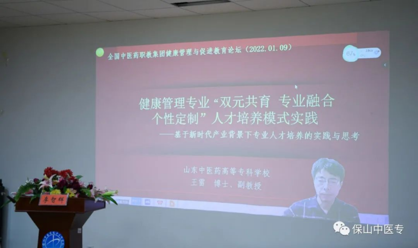 健康管理与促进教育论坛上,健康管理与促进类专业群建设指导委员会主任委员、保山中医药高等专科学校校长殷建忠教授作了题为“加强新时代公共卫生体系建设,立德树人自主培养健康守门人”的主题报告。建设指导委员会副主任委员、山东中医药高等专科学校王雷副教授作题为“基于新时代产业岗位需求健康管理专业人才培养的实践与思考”的报告。建设指导委员会副主任委员、安徽中医药高等专科学校张俊美副教授、张诗鸣老师作了题为“健康管理专业人才培养方案课程设置改革及实施概况”的报告。