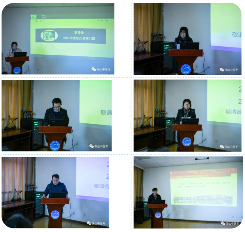1月8日,保山中医专召开2021年度综合考核集中汇报评议会,对学校27个部门进行年度考核。