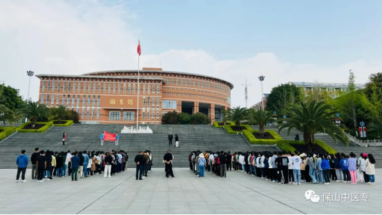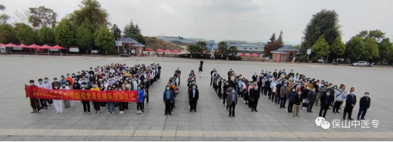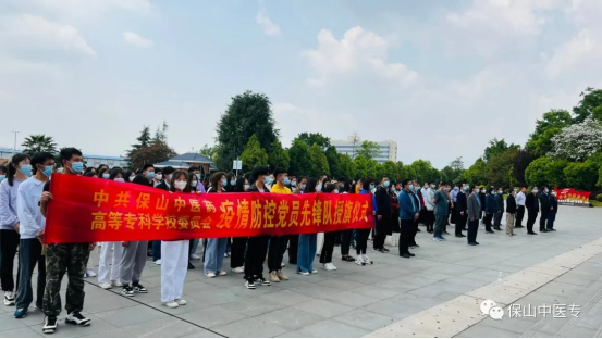 4月8日,保山中医专党委在杏林广场举行疫情防控党员先锋队授旗仪式,党委书记黄鹤平为党员先锋队授旗。