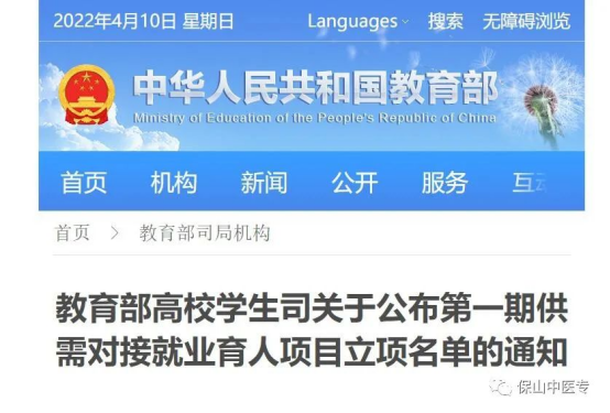 日前,教育部高校学生司第一期供需对接就业育人项目立项名单公布,保山中医专3项项目获批立项。