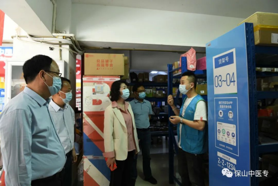 杨红琼一行先后对校门管控、食堂食品卫生安全、校内快递站、储备物资等进行了现场查看,了解校内快递管理流程,查看校医室学生就诊记录。