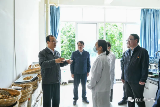 5月6日,保山市委书记杨军一行莅临保山中医专进行实地调研,市委教育体育工委书记、市教育体育局党组书记、局长杨云青,市委宣传部常务副部长刘新平,团市委书记冯涛等相关成员陪同。