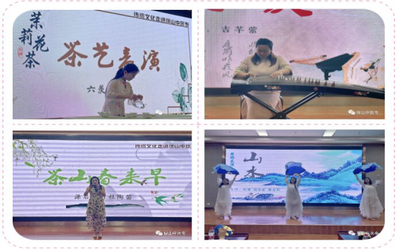 活动包括茶艺表演、古筝、陶笛演奏、传统舞蹈表演,内容精彩纷呈,使人目不暇接。学校图书馆勤工俭学学生表演了中医诵读《大医精诚》,在悦读互动活动中,同学们热情高涨,积极参与互动问答及读书交流。