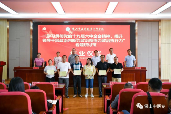 5月29日,保山中医专“学习贯彻党的十九届六中全会精神 提升领导干部‘政治三力’”专题研讨班顺利结业。