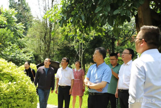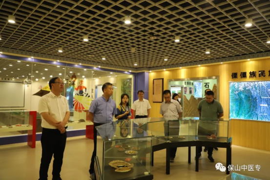 曾继贤一行对学校中药谷、党建文化长廊、省级科学普及教育基地——中医药传统文化科普馆、高黎贡民族医药馆等进行了实地考察调研。现场听取了学校党政主要领导就学校专业设置、校企合作、产教融合和就业等情况的汇报。
