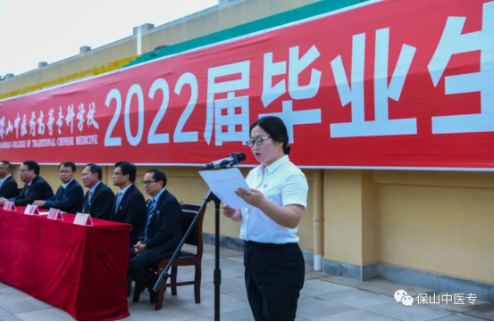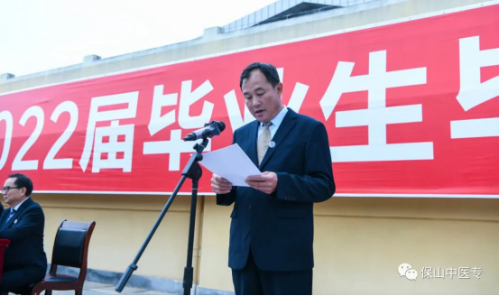 “青春逢盛世,奋斗正当时。”7月1日,保山中医专举行2022届毕业生毕业典礼,为2022届毕业生送上全体教职工的深情祝福与殷切希望。毕业典礼由党委副书记杨朝丽主持,党委书记黄鹤平等党委班子成员,正处级领导干部,各学院教授代表,各部门负责人,毕业班班主任、辅导员及2022届全体毕业生参加毕业典礼。