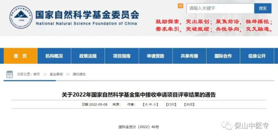 9月8日,国家自然科学基金委员会发布《关于2022年国家自然科学基金集中接受申请项目评审结果的公告》,保山中医专殷建忠教授团队申报的项目——《高浓度瘦素抑制线粒体自噬调节米色脂肪细胞功能在云南高原偏寒地区肥胖人群中的作用机制研究》获立项资助。项目依托单位为保山中医药高等专科学校,项目合作研究单位为昆明医科大学,项目研究期限4年(2023.1.1-2026.12.1)。