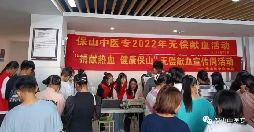 近年来,学校积极参与无偿献血公益活动,形成“校党委主导、多部门协作、全校参与”的无偿献血工作格局,无偿献血总量和献血人次持续增长,献血总量、献血人次、血液安全水平位居保山市前列。