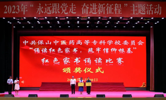 为庆祝中国共产党成立102周年,深入学习贯彻习近平新时代中国特色社会主义思想和党的二十大精神,弘扬伟大建党精神,激发基层党组织活力,引导党员干部铸牢政治忠诚、强化责任担当,增强光荣感、使命感,6月30日,保山中医专组织开展“诵读红色家书,筑牢信仰根基”诵读比赛。