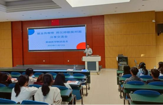 为更好引导青年学生立足实际、找准定位,树立正确就业观、择业观,积极引导学生在科技创新、乡村振兴、绿色发展、社会服务、卫国戍边等领域争当排头兵和主力军,结合大学生就业引航计划整体工作安排,11月15日,基础医学院团总支采取“线上+线下”相结合的方式,组织开展“就业传帮带 师兄师姐面对面”主题团日活动。