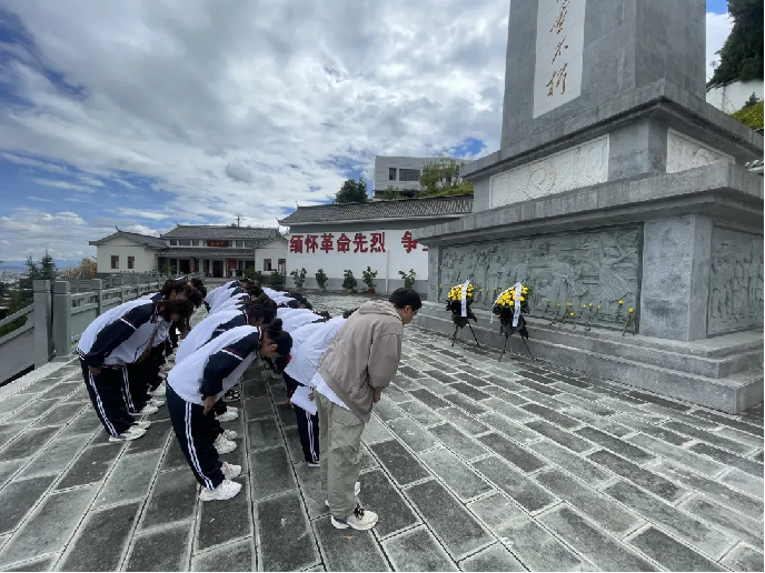巍巍青山埋忠骨,朵朵白花祭英魂。9月27日下午,学校在保山市烈士陵园开展“缅怀先烈事迹 传承英烈精神”主题团日活动。