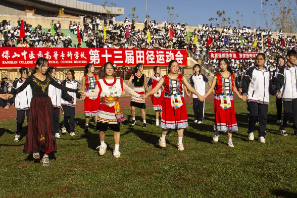 党委副书记、校长张云富宣布学校第十三届田径运动会开幕。养生操、八段锦、民族团结打跳等开幕式表演精彩纷呈,师生们动作行云流水、整齐划一、起伏有致,将张弛有度、意动形随的传统养生健身的神韵体现得淋漓尽致,呈现了一场传统与创新碰撞融合的文化盛宴。