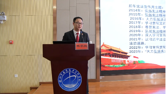专业解读,感受宪法力量。开展宪法知识讲座,讲座由保山市中级人民法院审管办副主任林宇庭主讲,林宇庭用生动的语言和具体的案例,深入浅出地从宪法基本原理及地位、设立国家宪法日的意义、宪法修正案的内容等方面讲解了《宪法》的主要框架、基本知识及在现实生活中的应用,号召师生认真学习宪法赋予我们每个人的责任和义务,用心感受宪法权威,用心体会宪法的庄严和神圣。