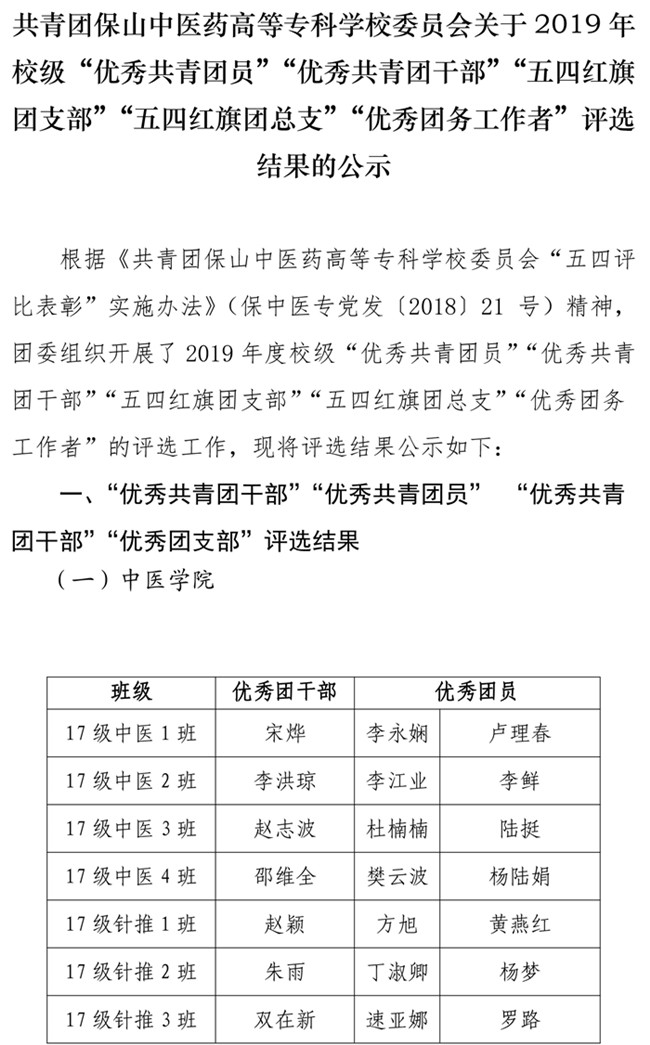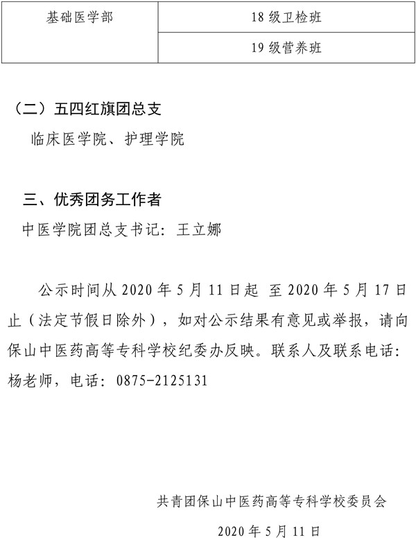 校级“优秀共青团员”“优秀共青团干部”“五四红旗团支部”“五四红旗团总支”“优秀团务工作者”评选结果的公示