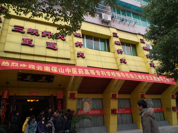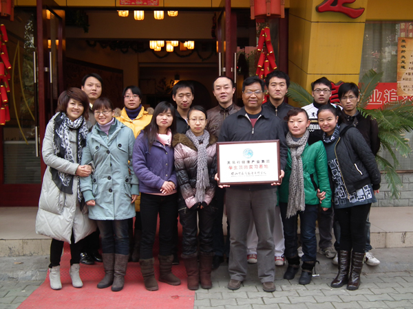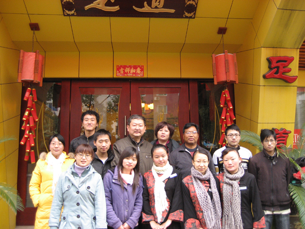 刘伟道副书记与我校部分顶岗实习学生在浙江丽水天易行纤夫足道店面前合影