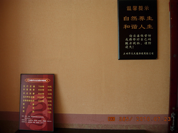 丽水天易行三峡纤夫足道价格表和温馨提示牌