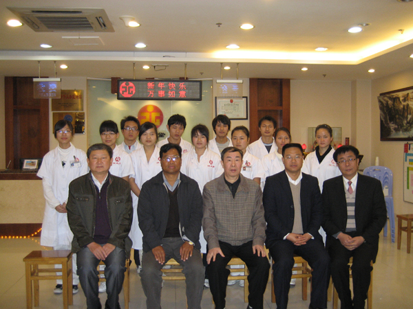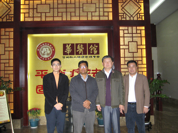 刘伟道副书记、张维平处长与华医馆院长(右一)和董事长(左一)合影