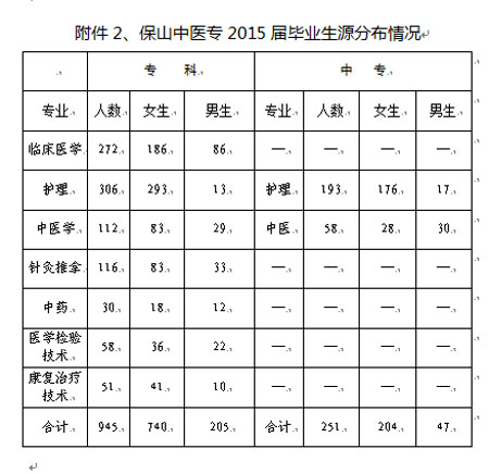 2、保山中医专2015届毕业生源分布情况;【下载】
