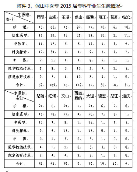 3、保山中医专2015届专科毕业生生源情况;【下载】