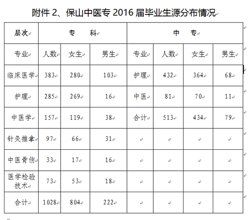2、保山中医专2016届毕业生源分布情况; 【下载】