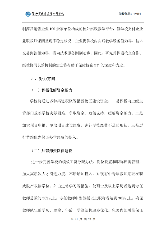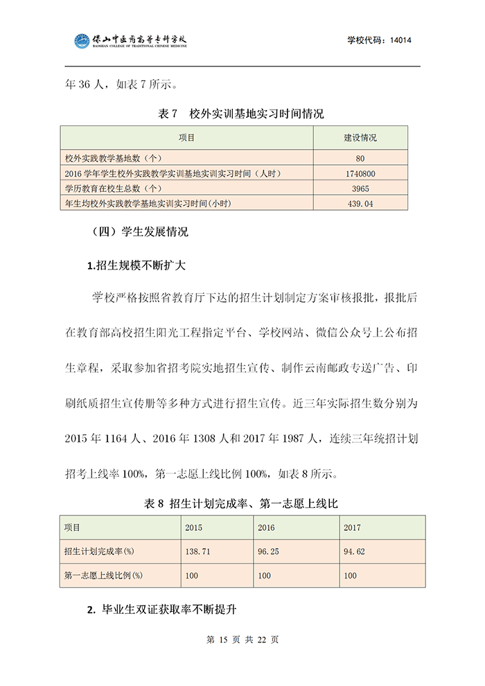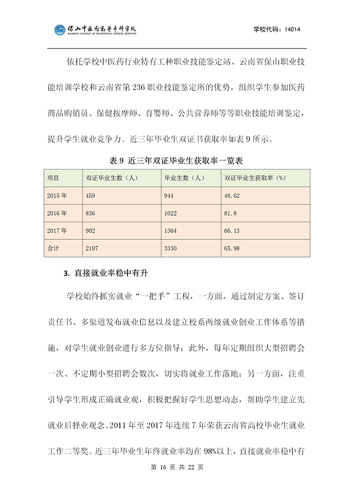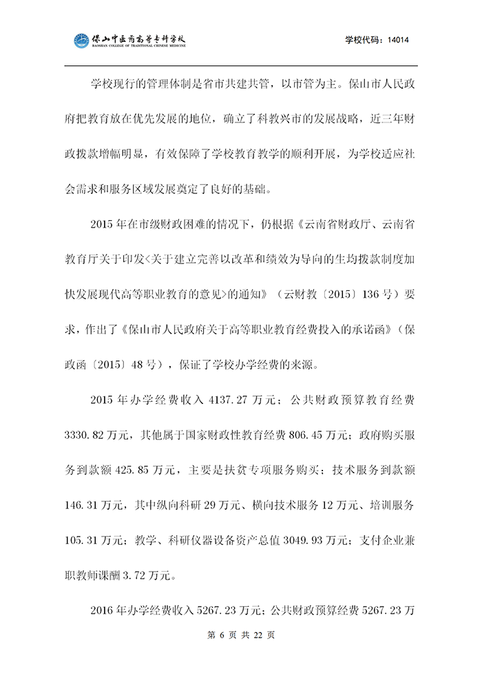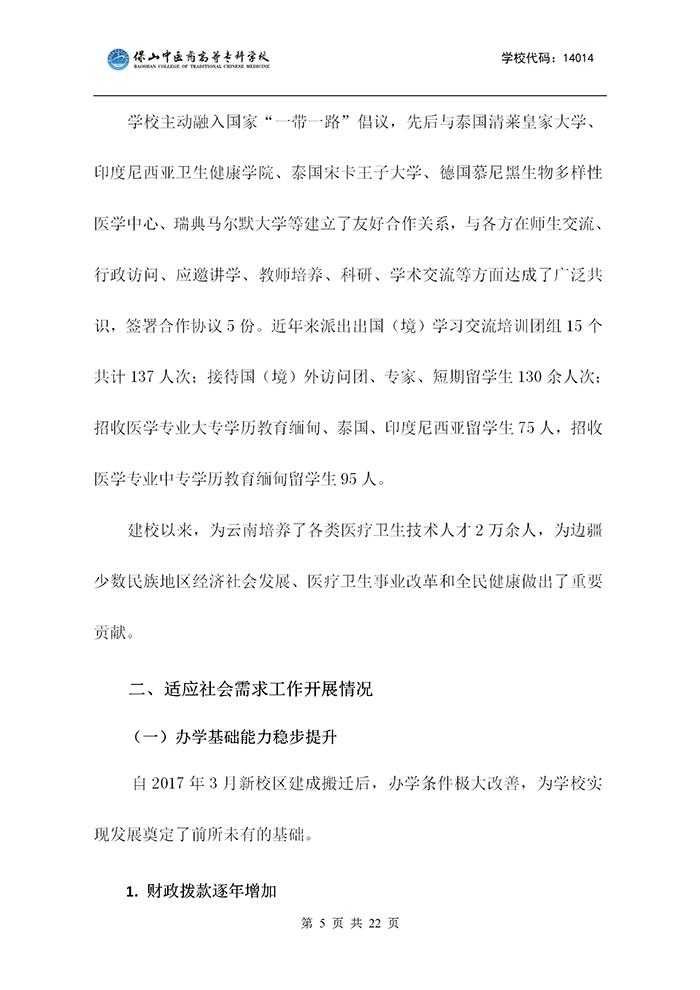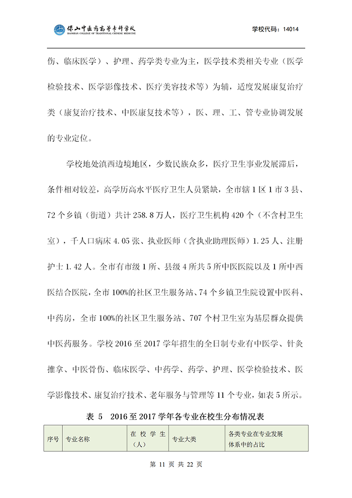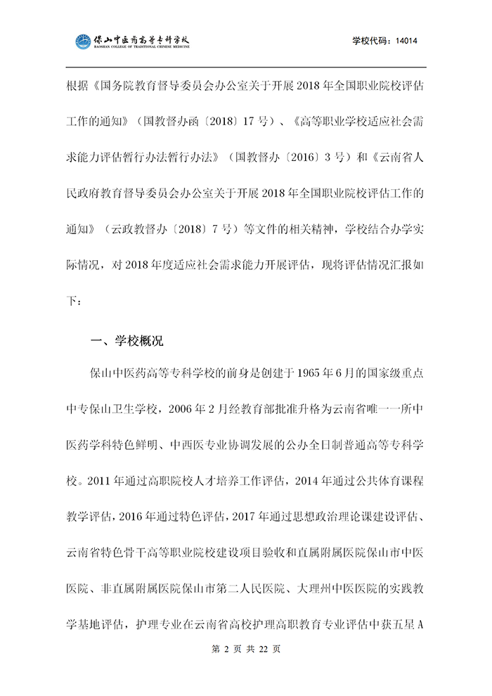 保山中医专适应社会需求能力评估自评报告