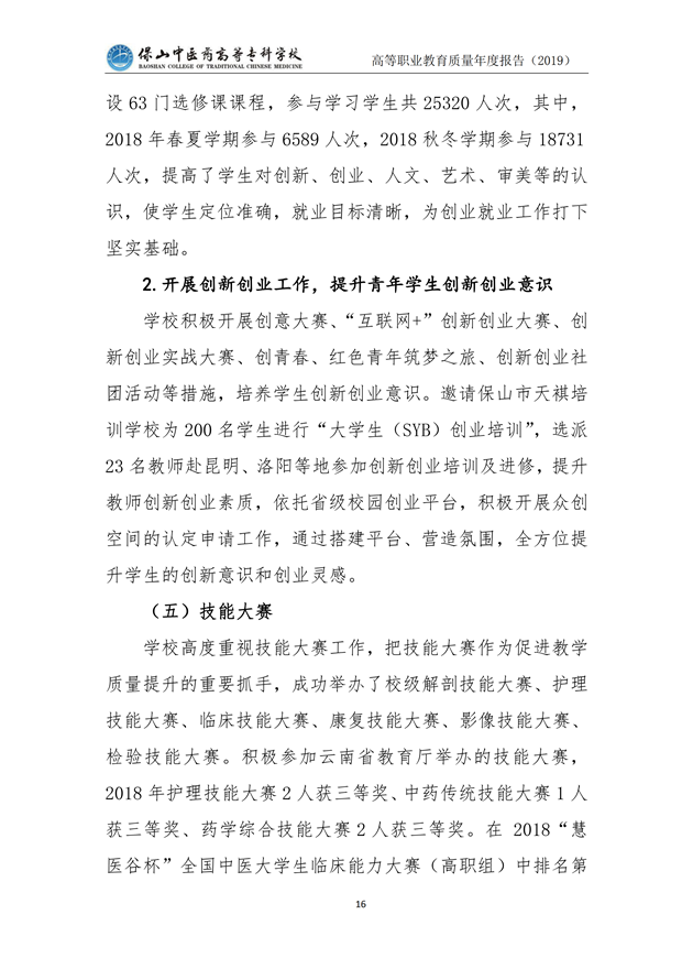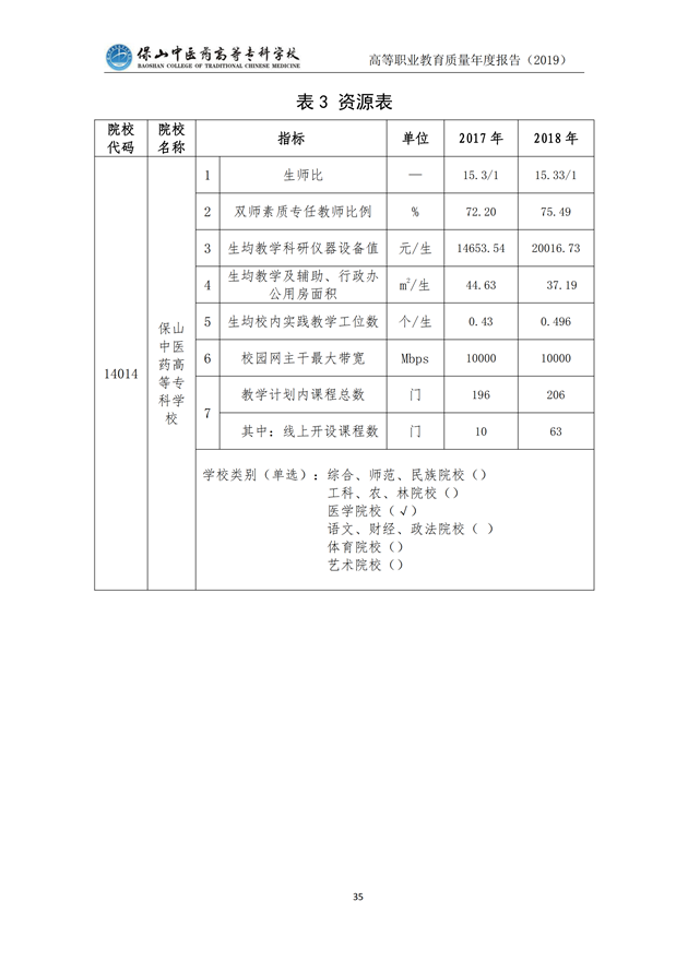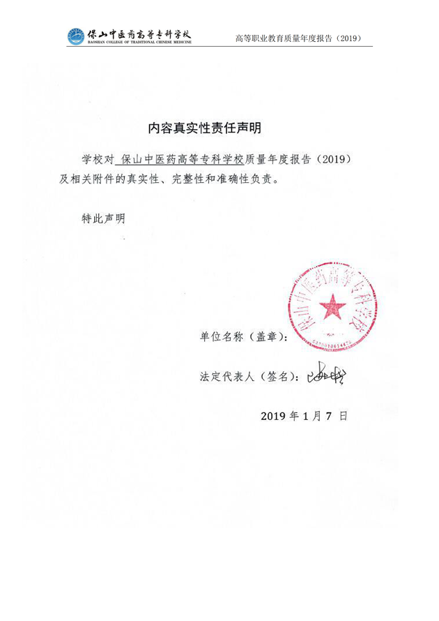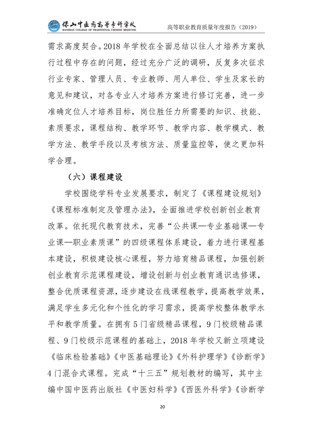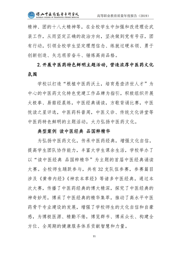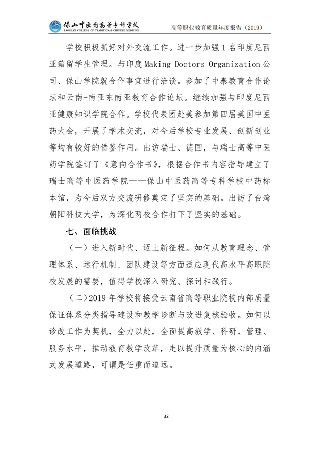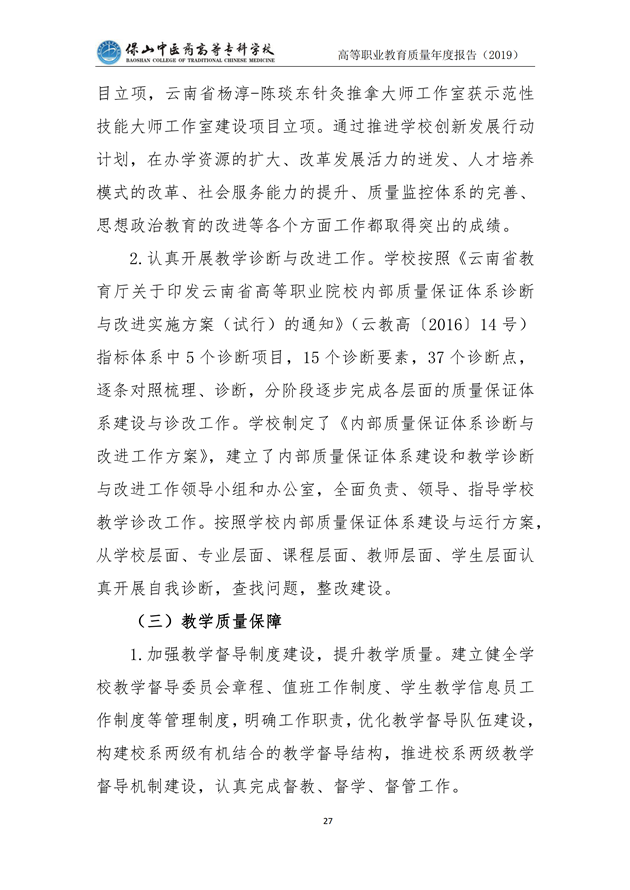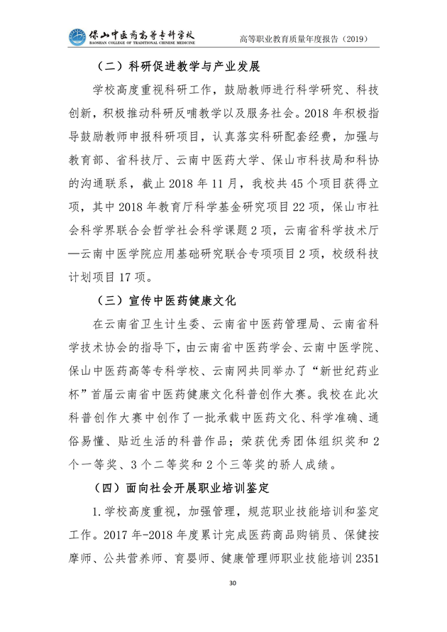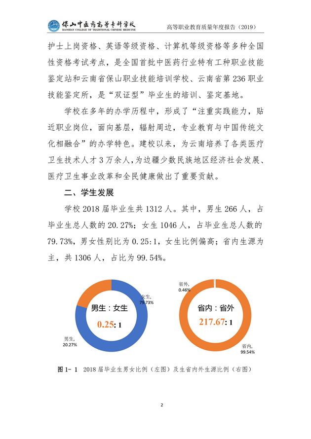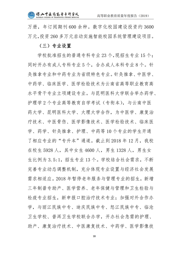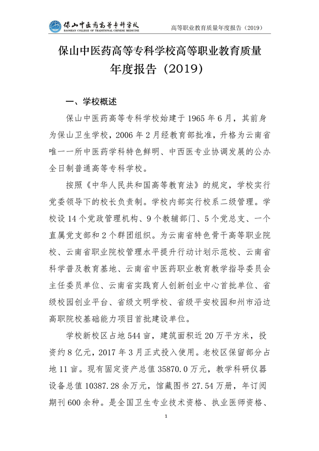 保山中医药高等专科学校质量年度报告(2019)