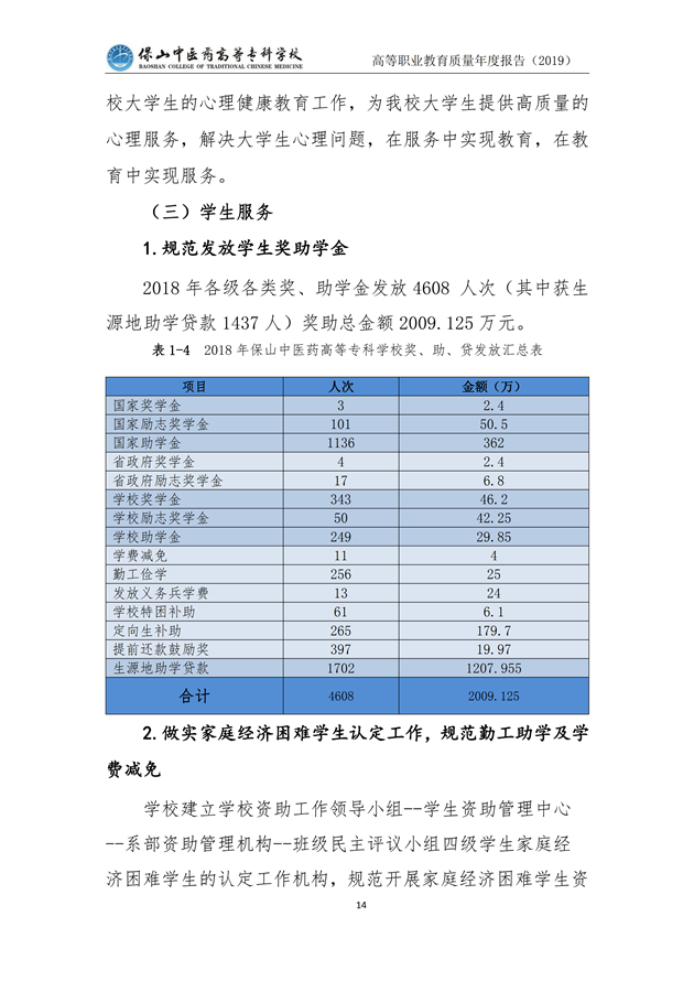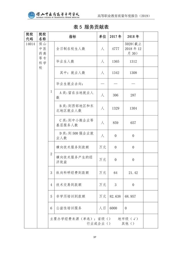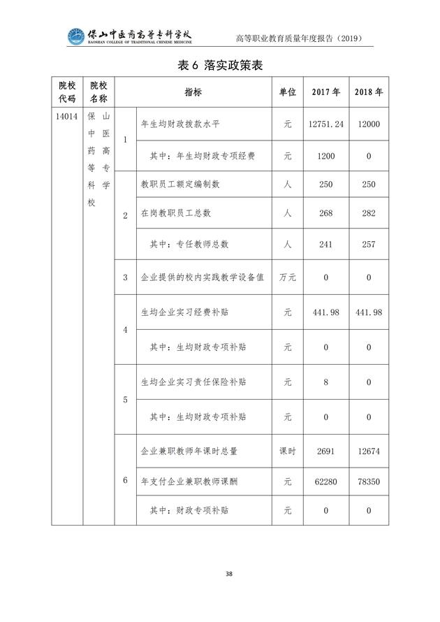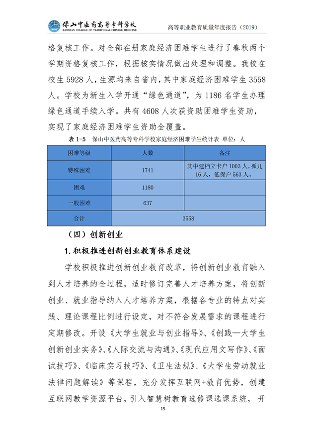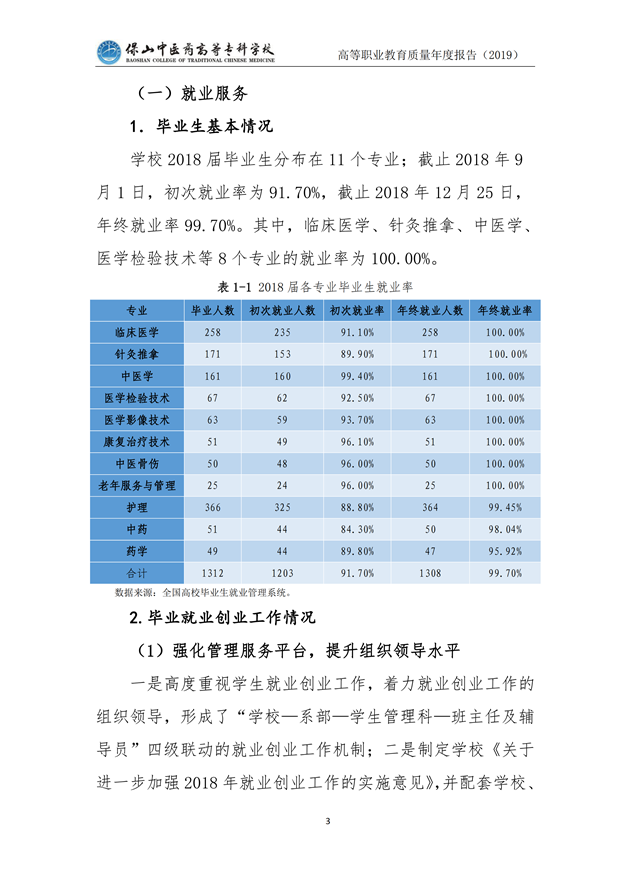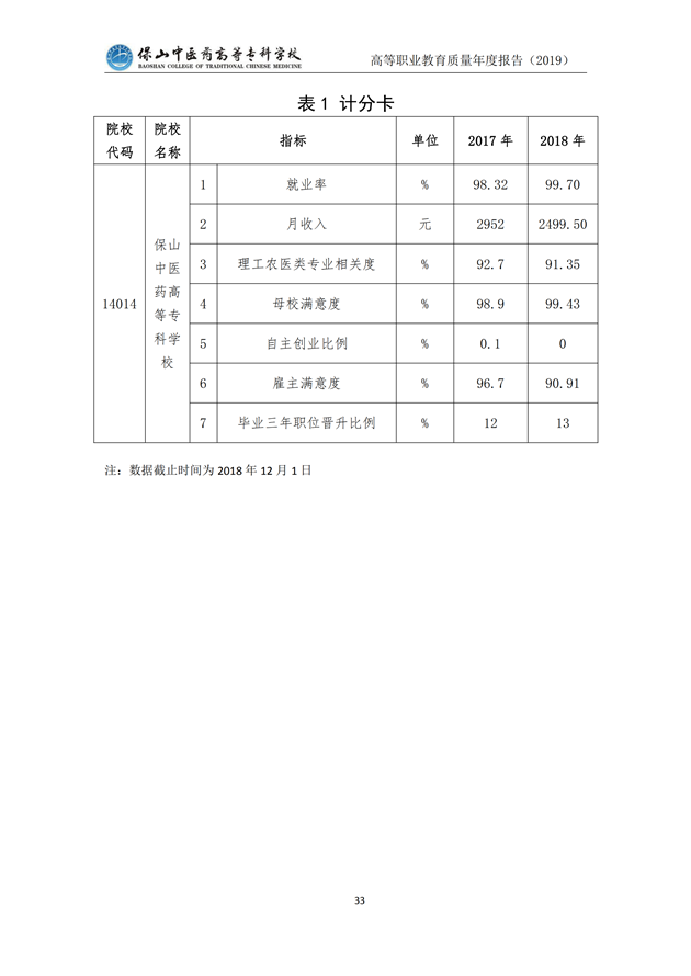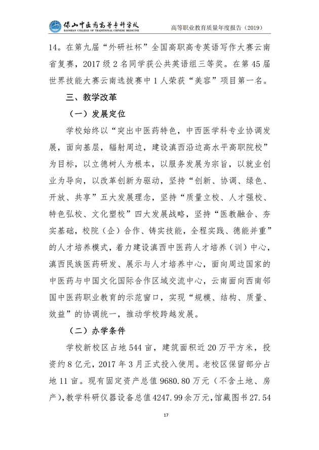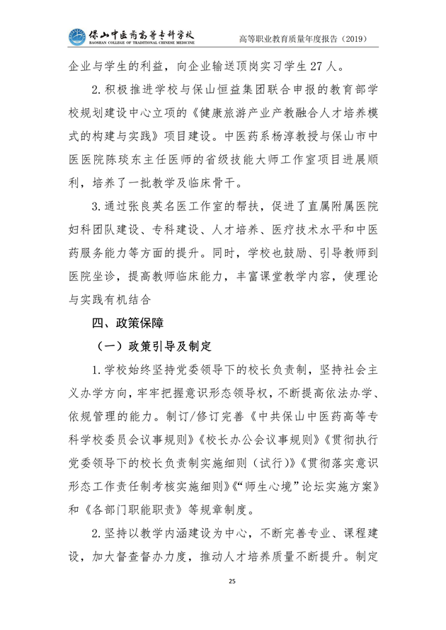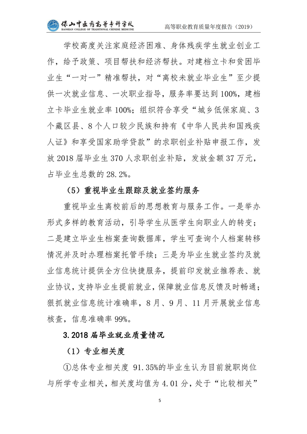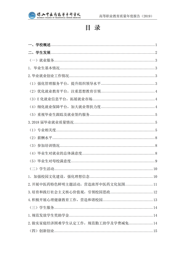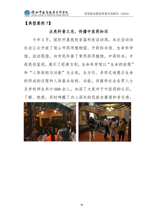 保山中医药高等专科学校质量年度报告(2019)