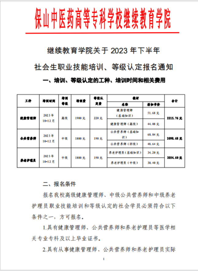 继续教育学院关于 2023 年下半年社会生职业技能培训、等级认定报名通知