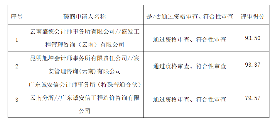 1.参与本项目的各磋商申请人评审情况: