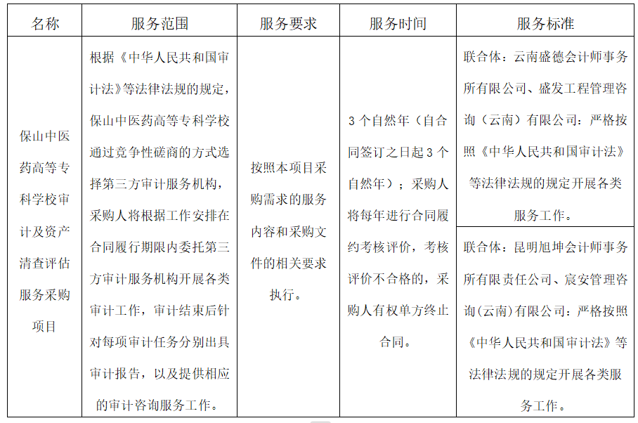二、项目名称:保山中医药高等专科学校审计及资产清查评估服务采购项目