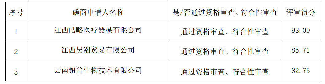 1.参与本项目的各磋商申请人评审情况: