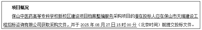 2.项目名称:保山中医药高等专科学校新校区建设项目档案整编服务