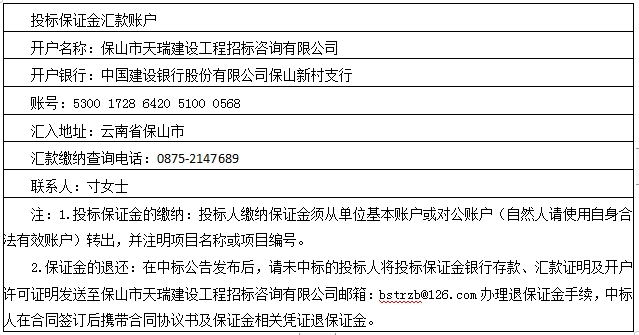 2.本项目投标保证金形式为转账或银行保函或保证保险或其他非现金方式(不接受现场缴纳现金),采用转账的方式提交投标保证金的,投标保证金缴纳账户如下: