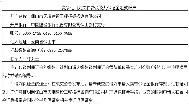 2.本项目谈判保证金形式为转账或银行保函或保证保险或其他非现金方式(不接受现场缴纳现金),采用转账的方式提交谈判保证金的,谈判保证金缴纳账户如下: