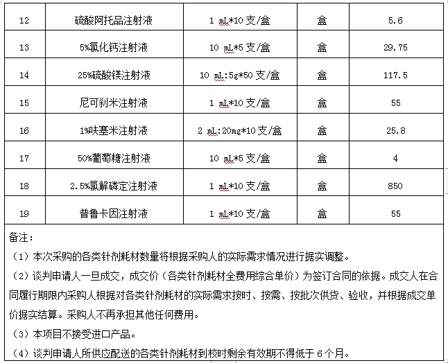 5.5谈判报价要求:参与本项目的谈判申请人应按竞争性谈判文件要求填报谈判报价总价(固定费用,按采购预算填写,不得调整)、各类针剂耗材全费用综合单价以及全部产品单价合计报价,谈判报价须包含本次采购涉及的各类针剂耗材的采购费,包装费、运输配送费、检验验收费用,项目管理费、人工费,保险,税费,风险(不可预见费),技术培训及售后维护服务等全部相关费用。谈判申请人一旦成交,成交价(各类针剂耗材全费用综合单价)作为签订合同的依据,采购人将根据项目实施情况据实结算。