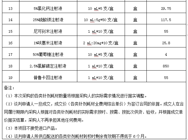 5.5谈判报价要求:参与本项目的谈判申请人应按竞争性谈判文件要求填报谈判报价总价(固定费用,按采购预算填写,不得调整)、各类针剂耗材全费用综合单价以及全部产品单价合计报价,谈判报价须包含本次采购涉及的各类针剂耗材的采购费,包装费、运输配送费、检验验收费用,项目管理费、人工费,保险,税费,风险(不可预见费),技术培训及售后维护服务等全部相关费用。谈判申请人一旦成交,成交价(各类针剂耗材全费用综合单价)作为签订合同的依据,采购人将根据项目实施情况据实结算。