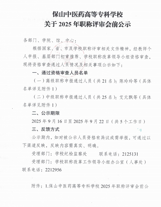 附件1.保山中医药高等专科学校2025年职称评审会前公示名单.pdf